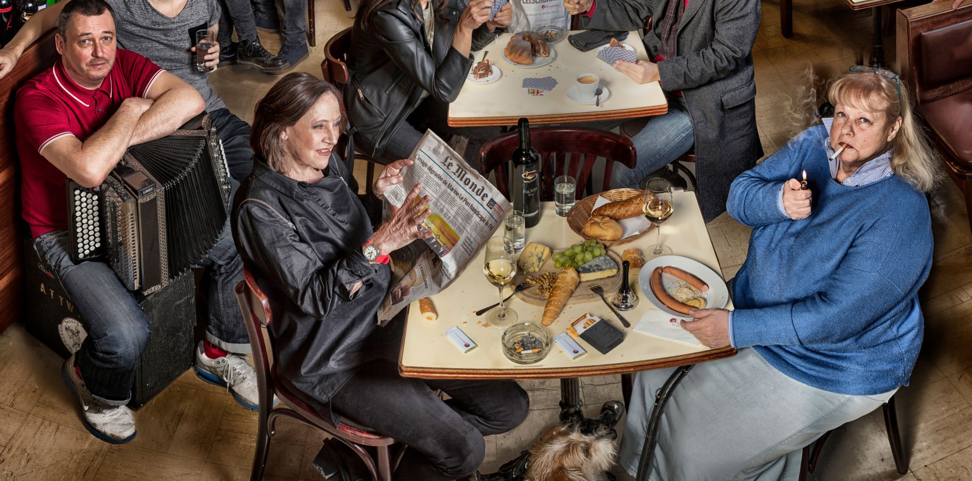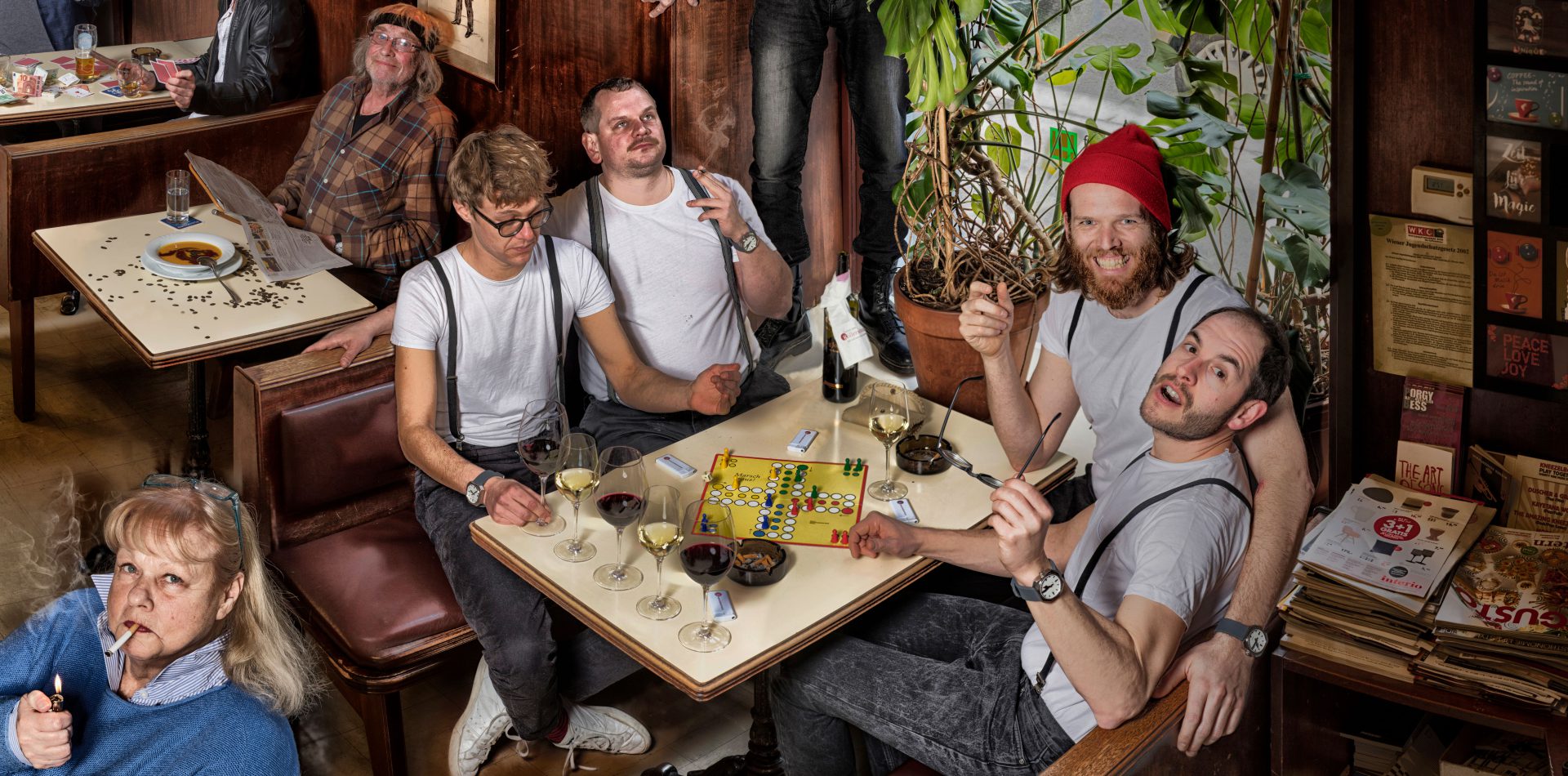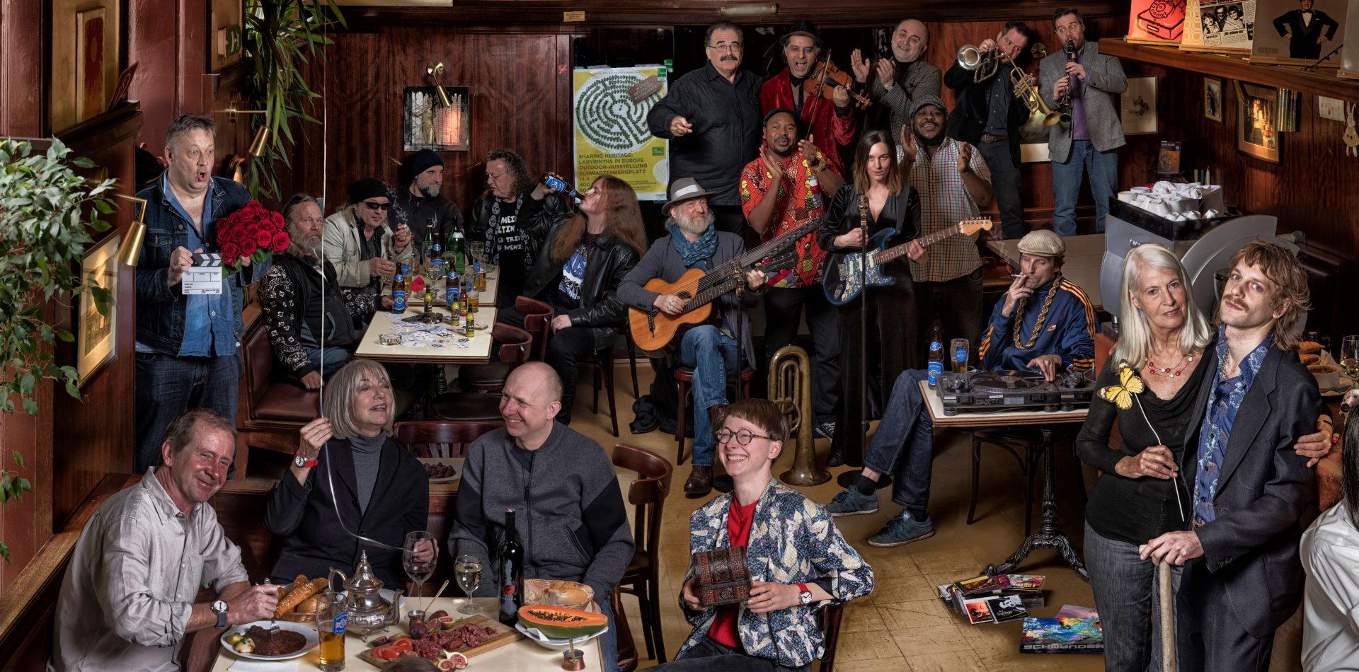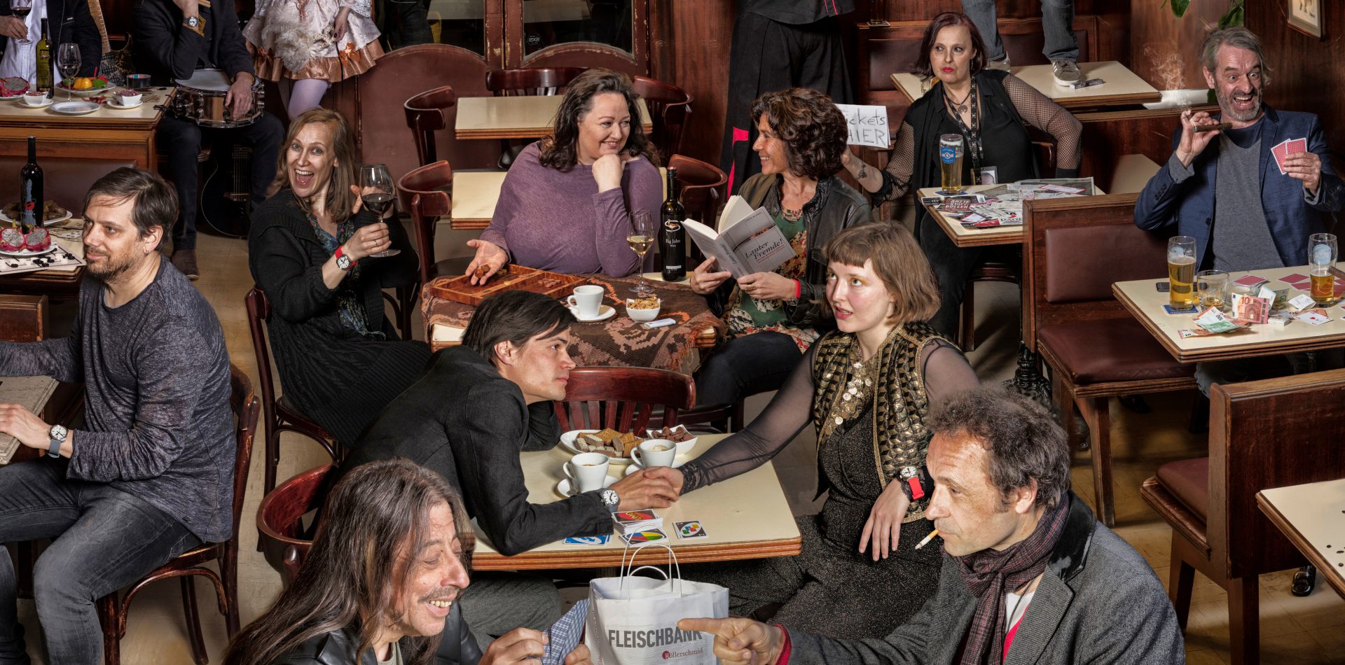 80 protagonists from the acting scene met on several shooting days from 2019 to 2020 in the Theater in der Josefstadt to set an example with their participation in STAGED ENSEMBLE. The Viennese photo artist Lukas M. Hüller created an alleged snapshot with pointed details from countless individual photos.
